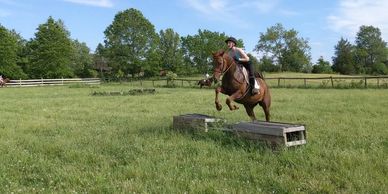 Our lower field houses a fun, introductory style cross country course for riders to test their skills and bravery. Learning to gallop on the flat or over fences is such a great way to strengthen legs and build a rider's endurance, as well as a horse or pony's!
